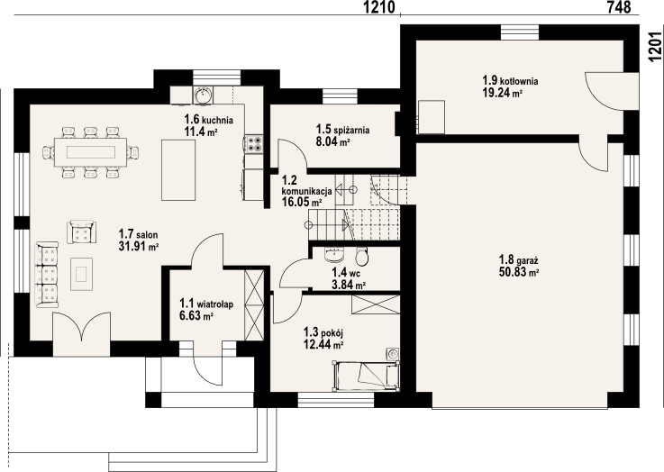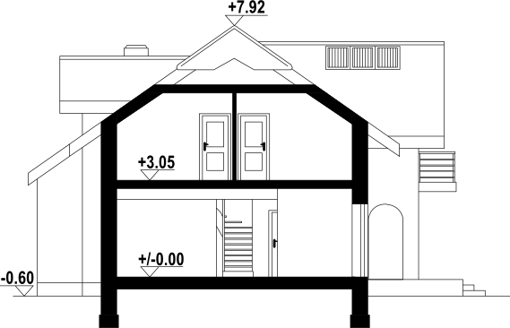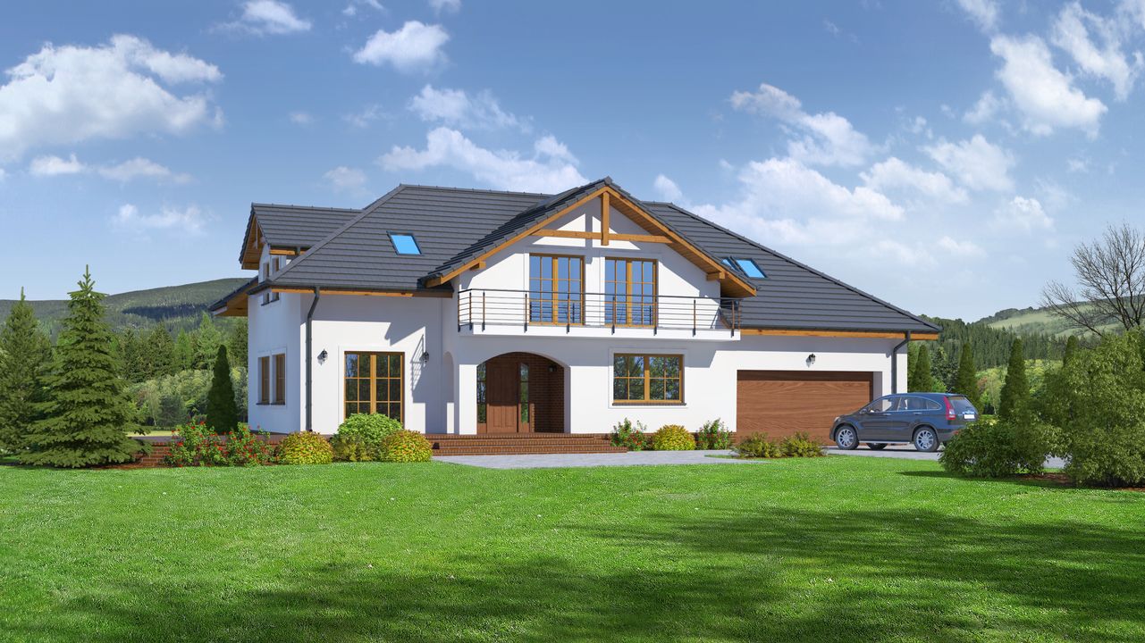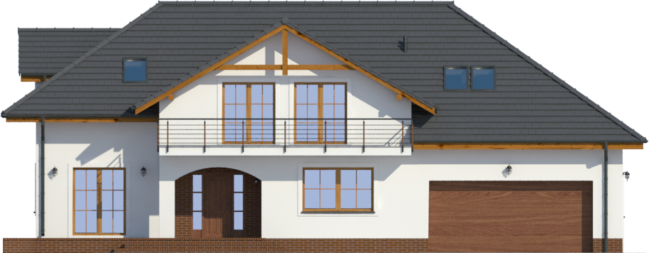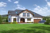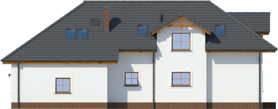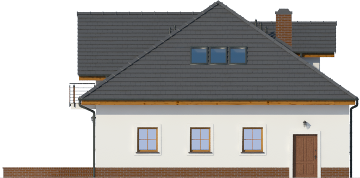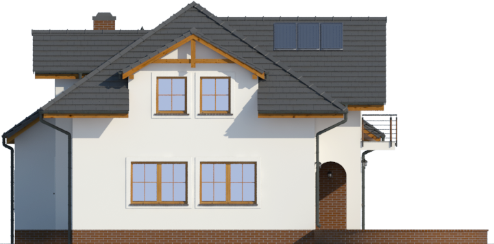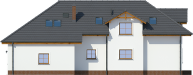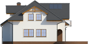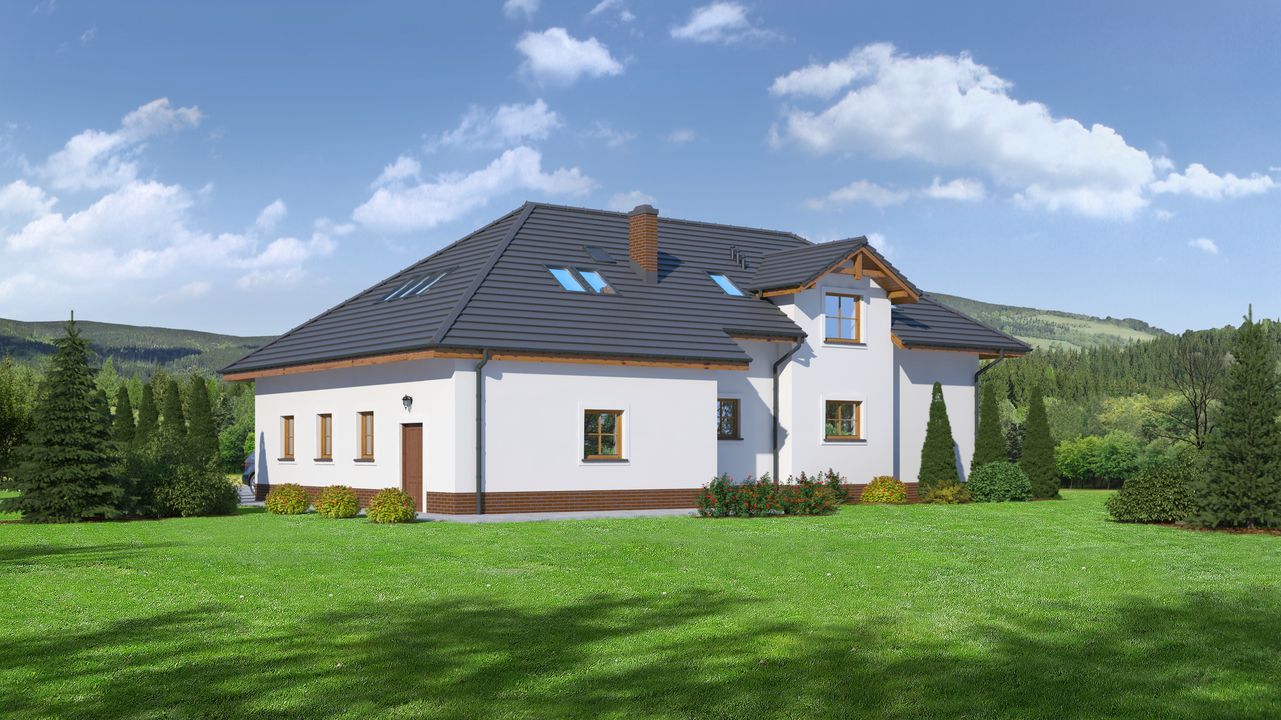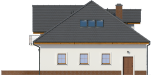 Graficzne opracowanie rzutów poglądowych widocznych na karcie projektu zostało wykonane przez Extradom.pl. Prezentowane przez Extradom.pl wizualizacje wykonane zostały przez autora projektu i należy poczytywać je jedynie za przykład i propozycję wykończenia, wizję architektoniczną autora projektu. Ostateczne wykończenie budynku może nastąpić na wiele sposobów. Szczegółowe rozwiązania zastosowane w oferowanej dokumentacji - w tym również ilość, lokalizacje i wygląd okien, drzwi, kominów - mogą w niewielkim stopniu różnić się od prezentowanej wizualizacji budynku.