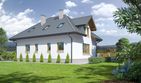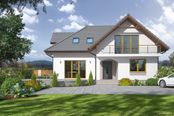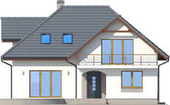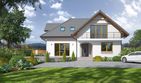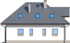 Graficzne opracowanie rzutów poglądowych widocznych na karcie projektu zostało wykonane przez Extradom.pl. Prezentowane przez Extradom.pl wizualizacje wykonane zostały przez autora projektu i należy poczytywać je jedynie za przykład i propozycję wykończenia, wizję architektoniczną autora projektu. Ostateczne wykończenie budynku może nastąpić na wiele sposobów. Szczegółowe rozwiązania zastosowane w oferowanej dokumentacji - w tym również ilość, lokalizacje i wygląd okien, drzwi, kominów - mogą w niewielkim stopniu różnić się od prezentowanej wizualizacji budynku.
