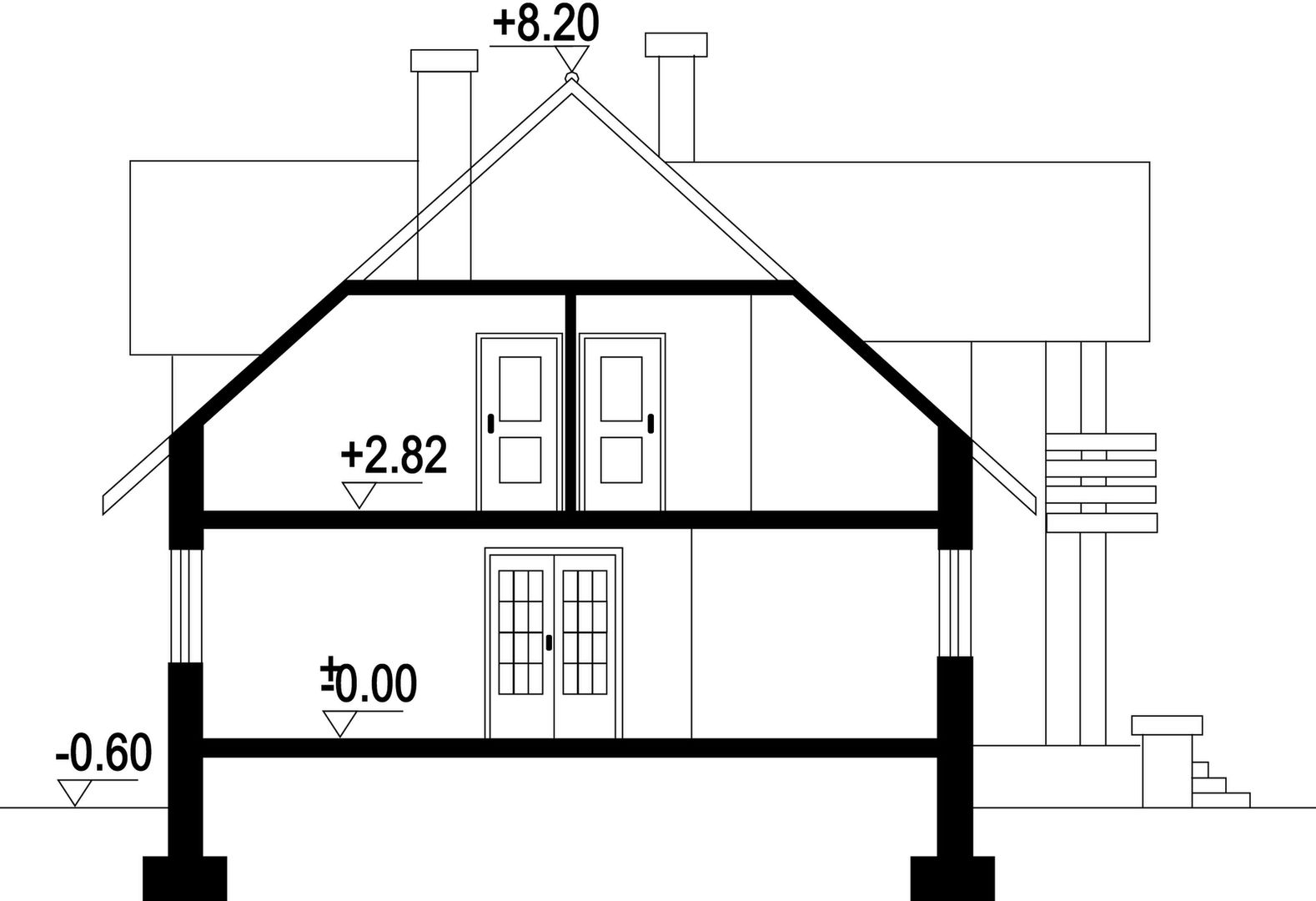 Wys. ścianki kolankowej 0.7 m Ilość drewna na więźbę 9.7 m³. Strop: drewniany. Pokrycie dachu: dachówka ceramiczna. Ściany wewnętrzne: pustaki ceramiczne. Ściany zewnętrzne: pustaki ceramiczne + styropian. Typ ogrzewania: kocioł gazowy.