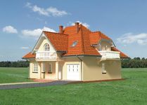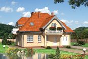 Graficzne opracowanie rzutów poglądowych widocznych na karcie projektu zostało wykonane przez Extradom.pl. Prezentowane przez Extradom.pl wizualizacje wykonane zostały przez autora projektu i należy poczytywać je jedynie za przykład i propozycję wykończenia, wizję architektoniczną autora projektu. Ostateczne wykończenie budynku może nastąpić na wiele sposobów. Szczegółowe rozwiązania zastosowane w oferowanej dokumentacji - w tym również ilość, lokalizacje i wygląd okien, drzwi, kominów - mogą w niewielkim stopniu różnić się od prezentowanej wizualizacji budynku.