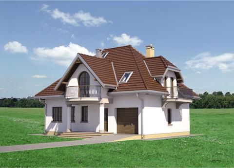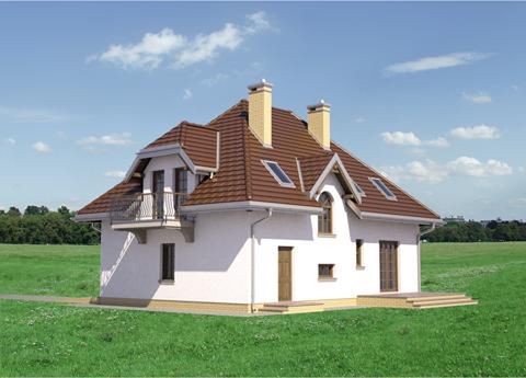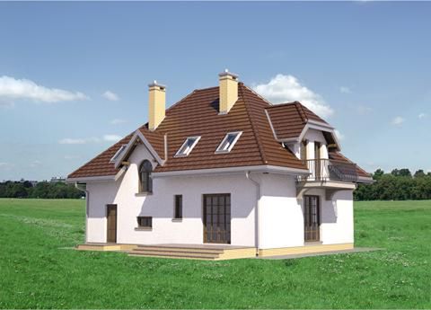 Graficzne opracowanie rzutów poglądowych widocznych na karcie projektu zostało wykonane przez Extradom.pl. Prezentowane przez Extradom.pl wizualizacje wykonane zostały przez autora projektu i należy poczytywać je jedynie za przykład i propozycję wykończenia, wizję architektoniczną autora projektu. Ostateczne wykończenie budynku może nastąpić na wiele sposobów. Szczegółowe rozwiązania zastosowane w oferowanej dokumentacji - w tym również ilość, lokalizacje i wygląd okien, drzwi, kominów - mogą w niewielkim stopniu różnić się od prezentowanej wizualizacji budynku.