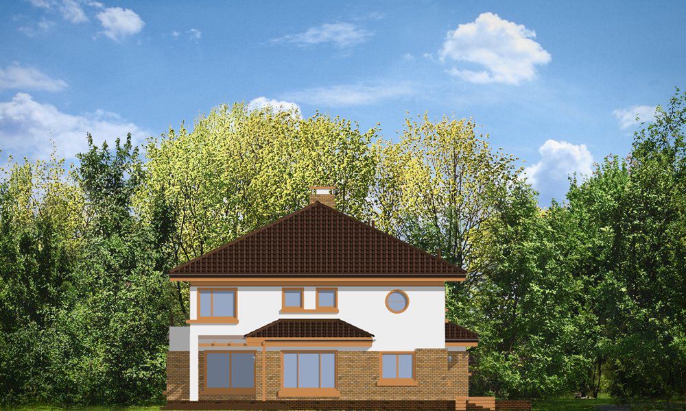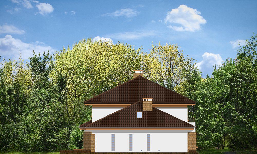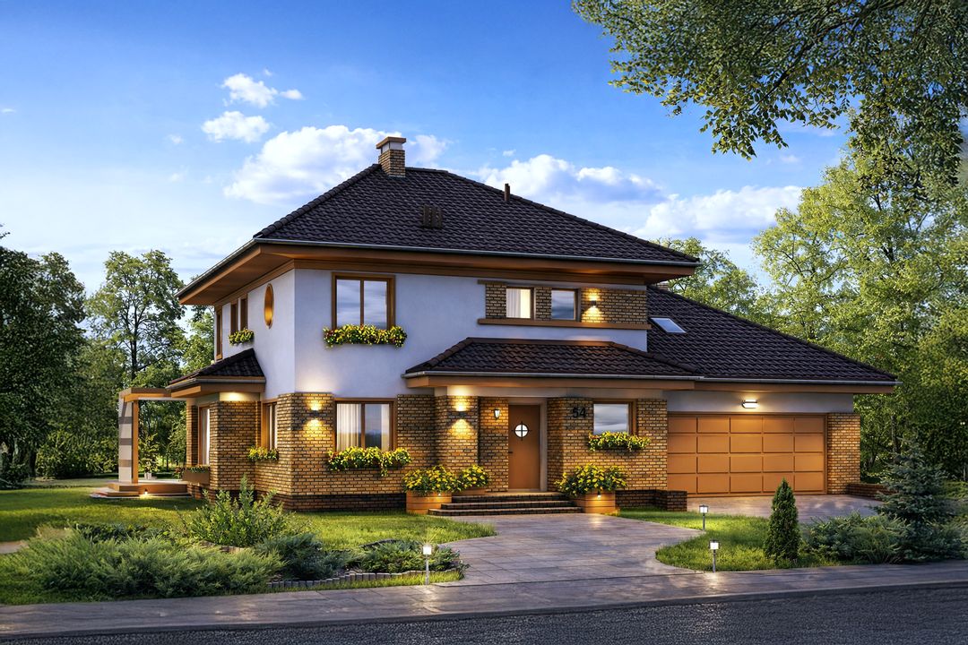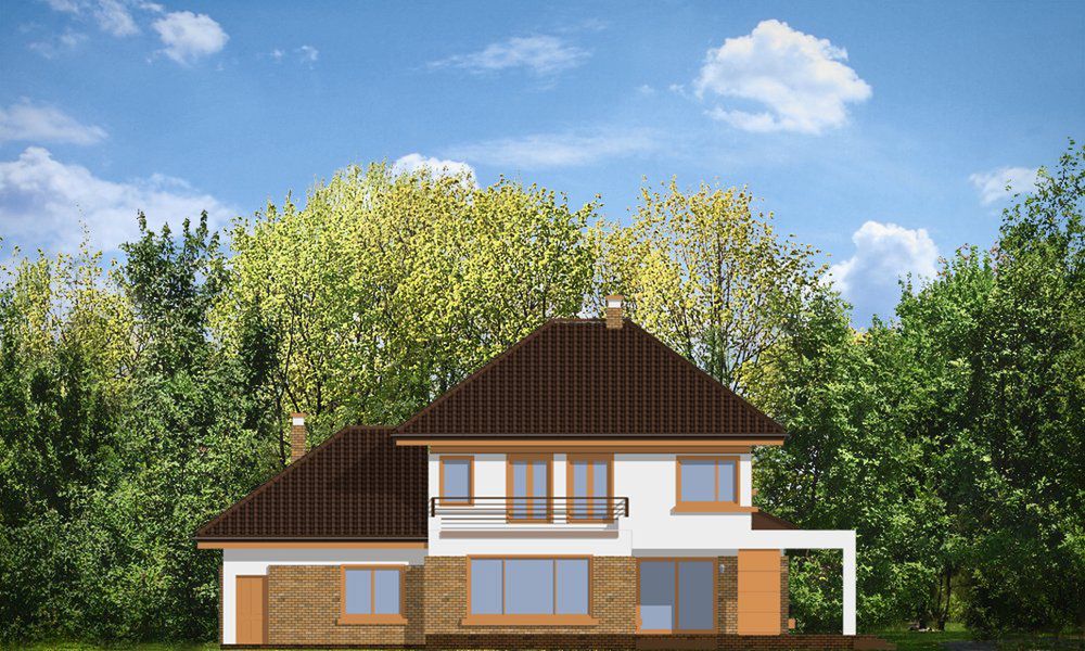 Graficzne opracowanie rzutów poglądowych widocznych na karcie projektu zostało wykonane przez Extradom.pl. Prezentowane przez Extradom.pl wizualizacje wykonane zostały przez autora projektu i należy poczytywać je jedynie za przykład i propozycję wykończenia, wizję architektoniczną autora projektu. Ostateczne wykończenie budynku może nastąpić na wiele sposobów. Szczegółowe rozwiązania zastosowane w oferowanej dokumentacji - w tym również ilość, lokalizacje i wygląd okien, drzwi, kominów - mogą w niewielkim stopniu różnić się od prezentowanej wizualizacji budynku.
