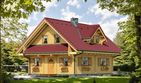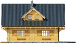 Graficzne opracowanie rzutów poglądowych widocznych na karcie projektu zostało wykonane przez Extradom.pl. Prezentowane przez Extradom.pl wizualizacje wykonane zostały przez autora projektu i należy poczytywać je jedynie za przykład i propozycję wykończenia, wizję architektoniczną autora projektu. Ostateczne wykończenie budynku może nastąpić na wiele sposobów. Szczegółowe rozwiązania zastosowane w oferowanej dokumentacji - w tym również ilość, lokalizacje i wygląd okien, drzwi, kominów - mogą w niewielkim stopniu różnić się od prezentowanej wizualizacji budynku.