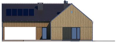 Graficzne opracowanie rzutów poglądowych widocznych na karcie projektu zostało wykonane przez Extradom.pl. Prezentowane przez Extradom.pl wizualizacje wykonane zostały przez autora projektu i należy poczytywać je jedynie za przykład i propozycję wykończenia, wizję architektoniczną autora projektu. Ostateczne wykończenie budynku może nastąpić na wiele sposobów. Szczegółowe rozwiązania zastosowane w oferowanej dokumentacji - w tym również ilość, lokalizacje i wygląd okien, drzwi, kominów - mogą w niewielkim stopniu różnić się od prezentowanej wizualizacji budynku.