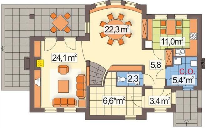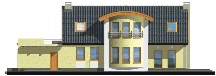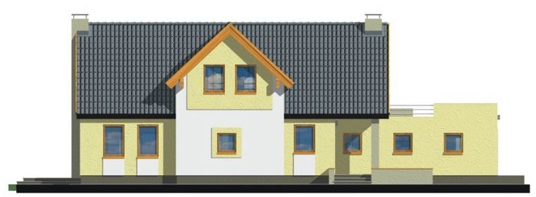 Graficzne opracowanie rzutów poglądowych widocznych na karcie projektu zostało wykonane przez Extradom.pl. Prezentowane przez Extradom.pl wizualizacje wykonane zostały przez autora projektu i należy poczytywać je jedynie za przykład i propozycję wykończenia, wizję architektoniczną autora projektu. Ostateczne wykończenie budynku może nastąpić na wiele sposobów. Szczegółowe rozwiązania zastosowane w oferowanej dokumentacji - w tym również ilość, lokalizacje i wygląd okien, drzwi, kominów - mogą w niewielkim stopniu różnić się od prezentowanej wizualizacji budynku.