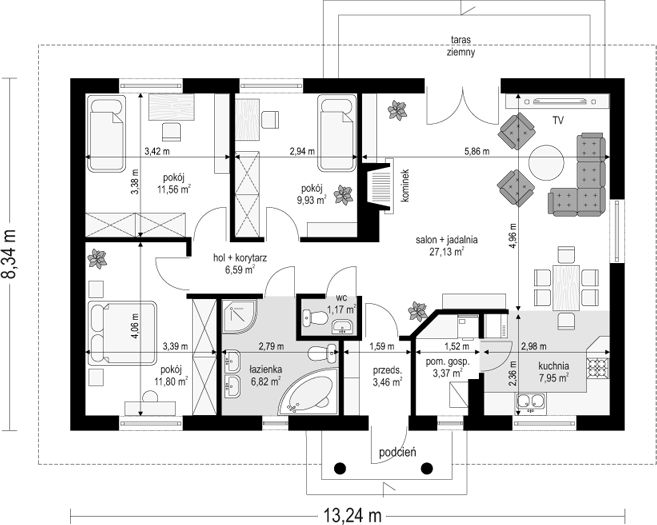 PROJEKT Z BUDOWĄ Istnieje możliwość zaadaptowania tego projektu do technologii prefabrykowanej/modułowej i budowy nawet w 6 miesięcy ze stałym kosztem budowy