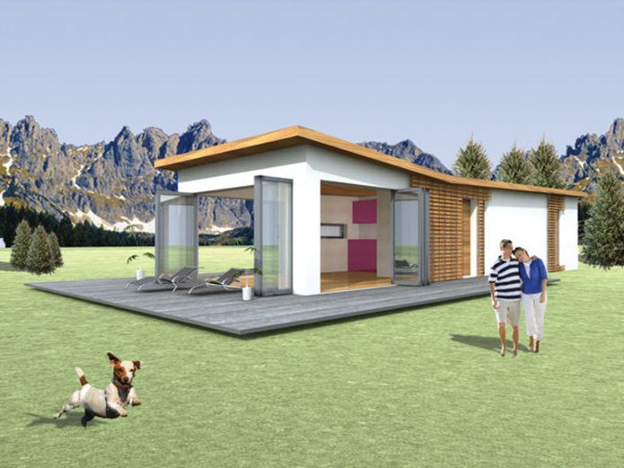 Ściany dwuwarstwowe z pustaków ceramicznych, ocieplone izolacją termiczną. Dach dwuspadowy. Strop drewniany.