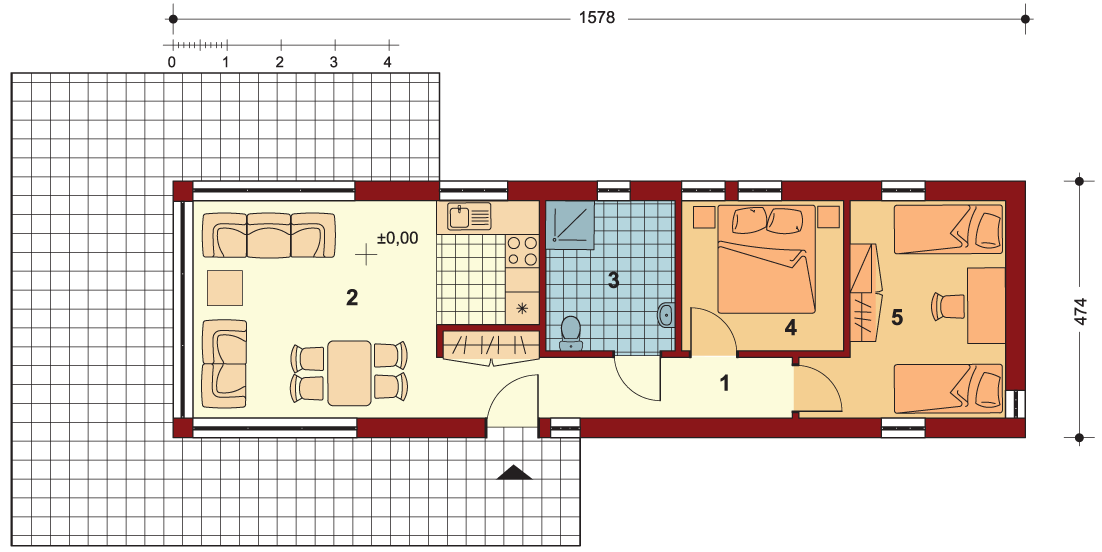 Graficzne opracowanie rzutów poglądowych widocznych na karcie projektu zostało wykonane przez Extradom.pl. Prezentowane przez Extradom.pl wizualizacje wykonane zostały przez autora projektu i należy poczytywać je jedynie za przykład i propozycję wykończenia, wizję architektoniczną autora projektu. Ostateczne wykończenie budynku może nastąpić na wiele sposobów. Szczegółowe rozwiązania zastosowane w oferowanej dokumentacji - w tym również ilość, lokalizacje i wygląd okien, drzwi, kominów - mogą w niewielkim stopniu różnić się od prezentowanej wizualizacji budynku.