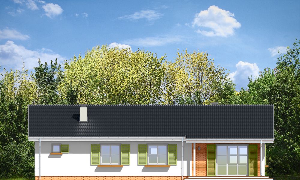 Graficzne opracowanie rzutów poglądowych widocznych na karcie projektu zostało wykonane przez Extradom.pl. Prezentowane przez Extradom.pl wizualizacje wykonane zostały przez autora projektu i należy poczytywać je jedynie za przykład i propozycję wykończenia, wizję architektoniczną autora projektu. Ostateczne wykończenie budynku może nastąpić na wiele sposobów. Szczegółowe rozwiązania zastosowane w oferowanej dokumentacji - w tym również ilość, lokalizacje i wygląd okien, drzwi, kominów - mogą w niewielkim stopniu różnić się od prezentowanej wizualizacji budynku.
