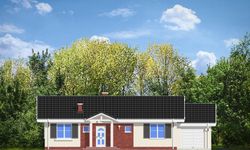 Graficzne opracowanie rzutów poglądowych widocznych na karcie projektu zostało wykonane przez Extradom.pl. Prezentowane przez Extradom.pl wizualizacje wykonane zostały przez autora projektu i należy poczytywać je jedynie za przykład i propozycję wykończenia, wizję architektoniczną autora projektu. Ostateczne wykończenie budynku może nastąpić na wiele sposobów. Szczegółowe rozwiązania zastosowane w oferowanej dokumentacji - w tym również ilość, lokalizacje i wygląd okien, drzwi, kominów - mogą w niewielkim stopniu różnić się od prezentowanej wizualizacji budynku.
