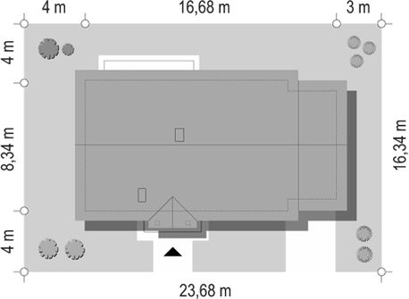 Fundamenty: żelbetowe wylewane. Ściany zewnętrzne: pustaki ceramiczna max + styropian. Strop: wiązary kratownicowe drewniane. Elewacje: tynk cienkopowłokowy. Pokrycie dachu: dachówka ceramiczna lub blachodachówka. Nachylenie dachu: 24 stopnie.