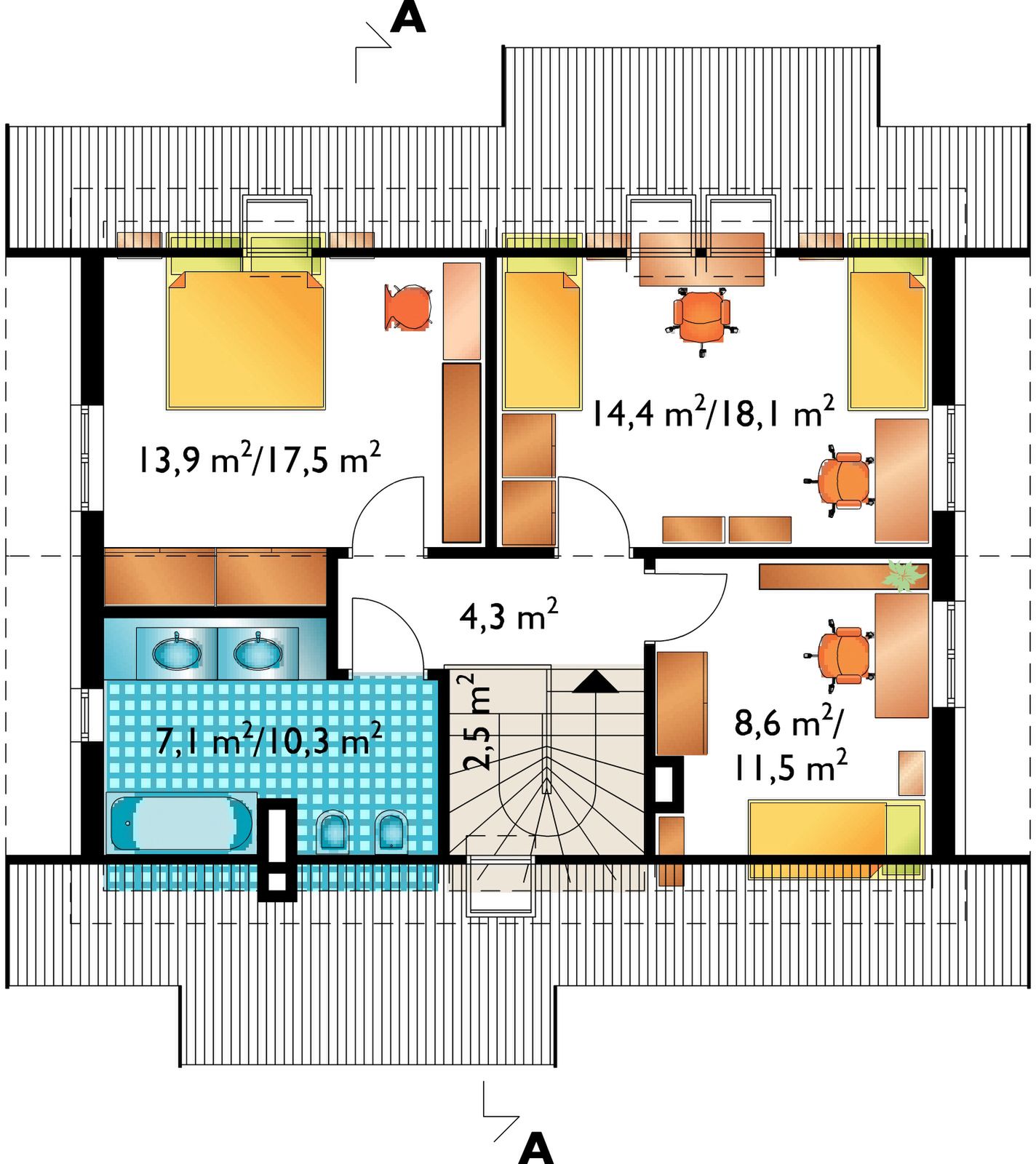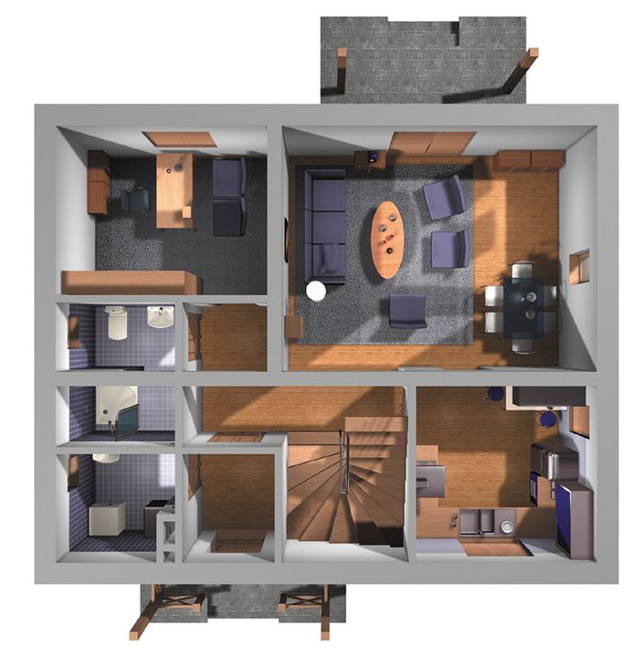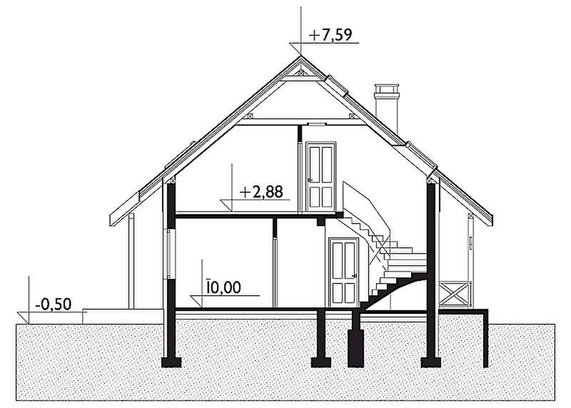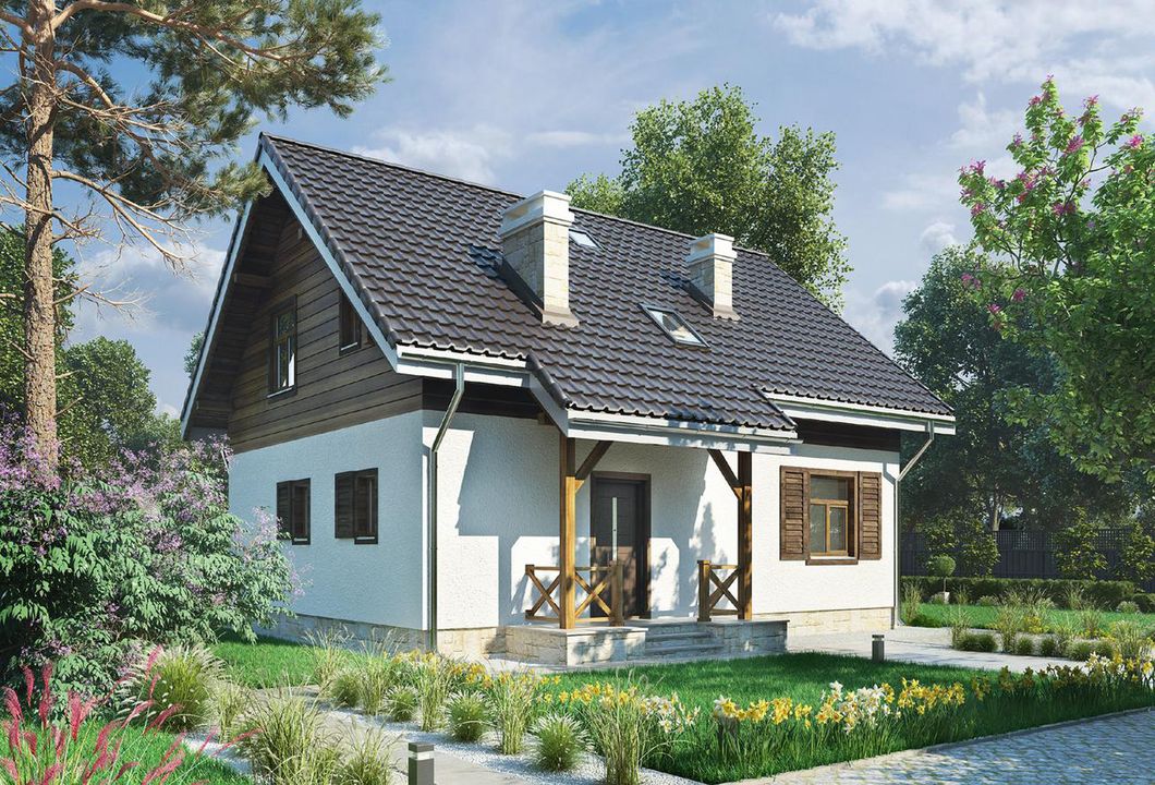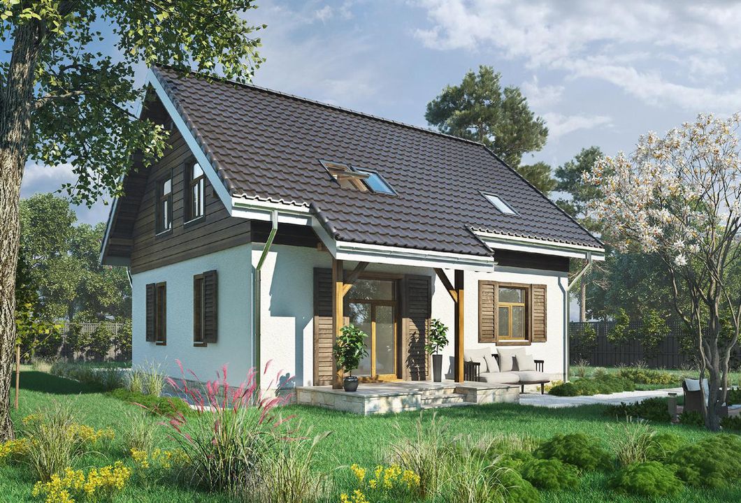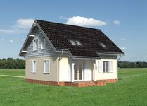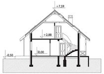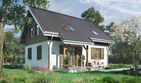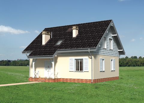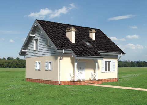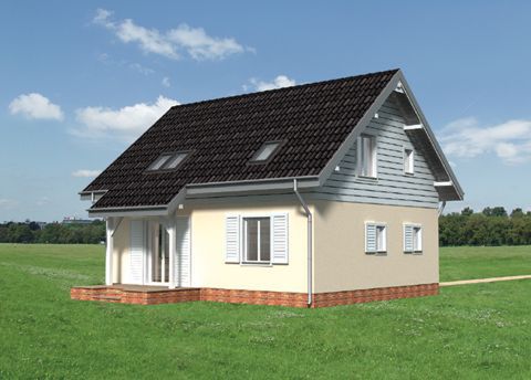 Graficzne opracowanie rzutów poglądowych widocznych na karcie projektu zostało wykonane przez Extradom.pl. Prezentowane przez Extradom.pl wizualizacje wykonane zostały przez autora projektu i należy poczytywać je jedynie za przykład i propozycję wykończenia, wizję architektoniczną autora projektu. Ostateczne wykończenie budynku może nastąpić na wiele sposobów. Szczegółowe rozwiązania zastosowane w oferowanej dokumentacji - w tym również ilość, lokalizacje i wygląd okien, drzwi, kominów - mogą w niewielkim stopniu różnić się od prezentowanej wizualizacji budynku.