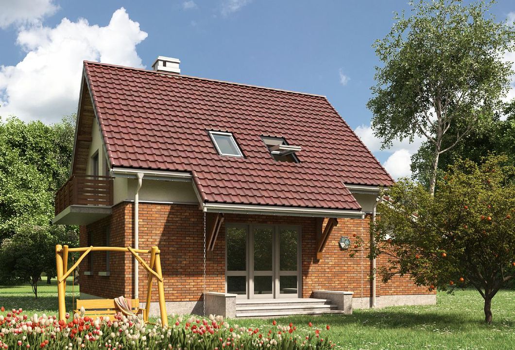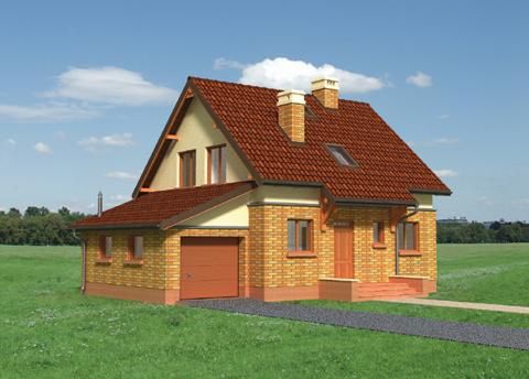 Graficzne opracowanie rzutów poglądowych widocznych na karcie projektu zostało wykonane przez Extradom.pl. Prezentowane przez Extradom.pl wizualizacje wykonane zostały przez autora projektu i należy poczytywać je jedynie za przykład i propozycję wykończenia, wizję architektoniczną autora projektu. Ostateczne wykończenie budynku może nastąpić na wiele sposobów. Szczegółowe rozwiązania zastosowane w oferowanej dokumentacji - w tym również ilość, lokalizacje i wygląd okien, drzwi, kominów - mogą w niewielkim stopniu różnić się od prezentowanej wizualizacji budynku.