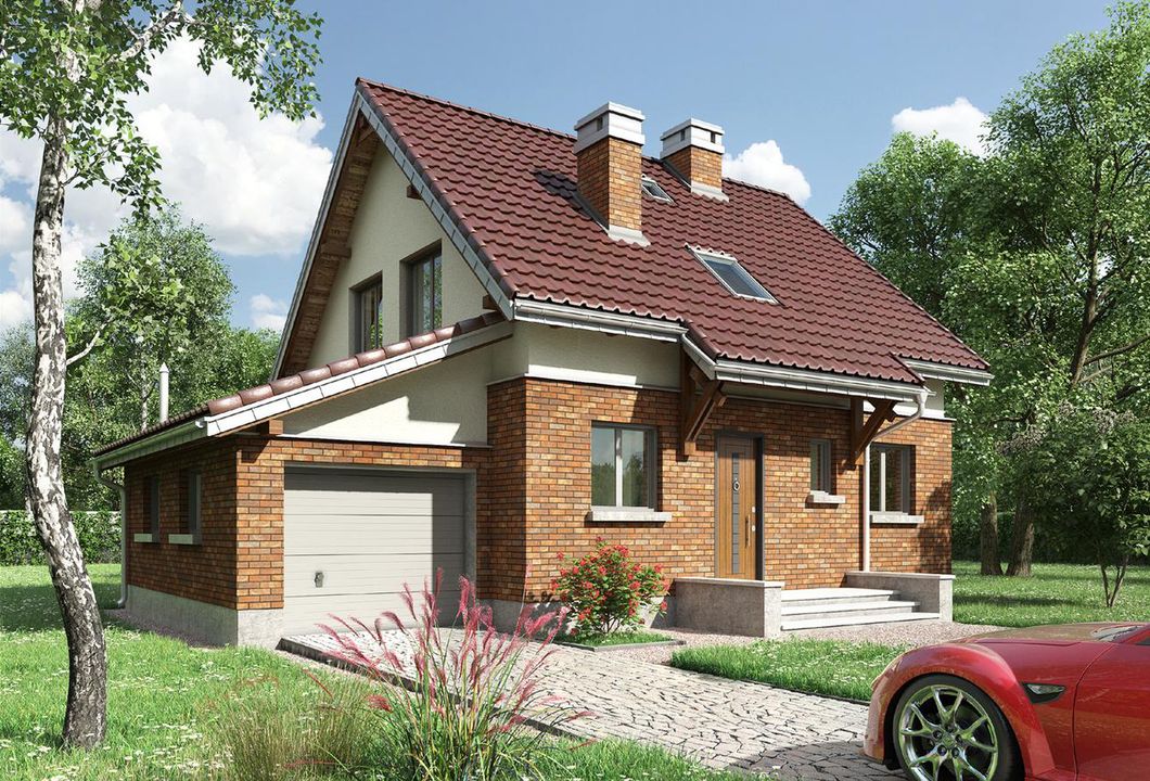 Technologia i konstrukcja: murowana – silikaty. Ściany zewnętrzne: bloczki silikatowe + wełna mineralna + cegła klinkierowa. Ściany wewnętrzne: bloczki silikatowe. Strop: żelbetowy. Konstrukcja dachu: drewniana, jętkowa. Rodzaj schodów: żelbetowe. Typ ogrzewania: kocioł na gaz. Wentylacja:. Aneks na paliwo stałe: dostępny (zapytaj o cenę). Pokrycie dachu: dachówka ceramiczna. Elewacja: połówkowa cegła klinkierowa + tynk mineralny.