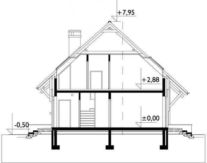 Graficzne opracowanie rzutów poglądowych widocznych na karcie projektu zostało wykonane przez Extradom.pl. Prezentowane przez Extradom.pl wizualizacje wykonane zostały przez autora projektu i należy poczytywać je jedynie za przykład i propozycję wykończenia, wizję architektoniczną autora projektu. Ostateczne wykończenie budynku może nastąpić na wiele sposobów. Szczegółowe rozwiązania zastosowane w oferowanej dokumentacji - w tym również ilość, lokalizacje i wygląd okien, drzwi, kominów - mogą w niewielkim stopniu różnić się od prezentowanej wizualizacji budynku.