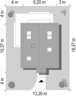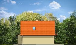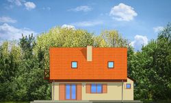 Graficzne opracowanie rzutów poglądowych widocznych na karcie projektu zostało wykonane przez Extradom.pl. Prezentowane przez Extradom.pl wizualizacje wykonane zostały przez autora projektu i należy poczytywać je jedynie za przykład i propozycję wykończenia, wizję architektoniczną autora projektu. Ostateczne wykończenie budynku może nastąpić na wiele sposobów. Szczegółowe rozwiązania zastosowane w oferowanej dokumentacji - w tym również ilość, lokalizacje i wygląd okien, drzwi, kominów - mogą w niewielkim stopniu różnić się od prezentowanej wizualizacji budynku.