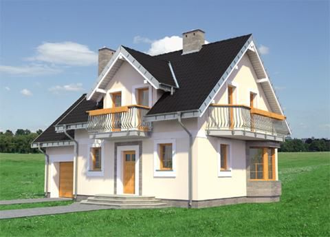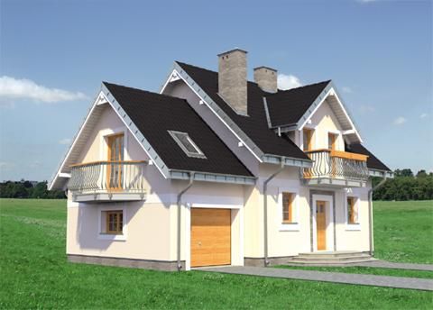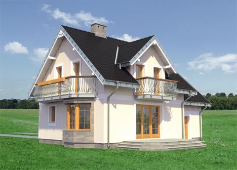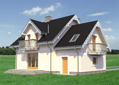 Graficzne opracowanie rzutów poglądowych widocznych na karcie projektu zostało wykonane przez Extradom.pl. Prezentowane przez Extradom.pl wizualizacje wykonane zostały przez autora projektu i należy poczytywać je jedynie za przykład i propozycję wykończenia, wizję architektoniczną autora projektu. Ostateczne wykończenie budynku może nastąpić na wiele sposobów. Szczegółowe rozwiązania zastosowane w oferowanej dokumentacji - w tym również ilość, lokalizacje i wygląd okien, drzwi, kominów - mogą w niewielkim stopniu różnić się od prezentowanej wizualizacji budynku.