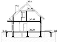 Graficzne opracowanie rzutów poglądowych widocznych na karcie projektu zostało wykonane przez Extradom.pl. Prezentowane przez Extradom.pl wizualizacje wykonane zostały przez autora projektu i należy poczytywać je jedynie za przykład i propozycję wykończenia, wizję architektoniczną autora projektu. Ostateczne wykończenie budynku może nastąpić na wiele sposobów. Szczegółowe rozwiązania zastosowane w oferowanej dokumentacji - w tym również ilość, lokalizacje i wygląd okien, drzwi, kominów - mogą w niewielkim stopniu różnić się od prezentowanej wizualizacji budynku.