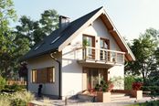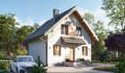 Graficzne opracowanie rzutów poglądowych widocznych na karcie projektu zostało wykonane przez Extradom.pl. Prezentowane przez Extradom.pl wizualizacje wykonane zostały przez autora projektu i należy poczytywać je jedynie za przykład i propozycję wykończenia, wizję architektoniczną autora projektu. Ostateczne wykończenie budynku może nastąpić na wiele sposobów. Szczegółowe rozwiązania zastosowane w oferowanej dokumentacji - w tym również ilość, lokalizacje i wygląd okien, drzwi, kominów - mogą w niewielkim stopniu różnić się od prezentowanej wizualizacji budynku.