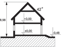Graficzne opracowanie rzutów poglądowych widocznych na karcie projektu zostało wykonane przez Extradom.pl. Prezentowane przez Extradom.pl wizualizacje wykonane zostały przez autora projektu i należy poczytywać je jedynie za przykład i propozycję wykończenia, wizję architektoniczną autora projektu. Ostateczne wykończenie budynku może nastąpić na wiele sposobów. Szczegółowe rozwiązania zastosowane w oferowanej dokumentacji - w tym również ilość, lokalizacje i wygląd okien, drzwi, kominów - mogą w niewielkim stopniu różnić się od prezentowanej wizualizacji budynku.