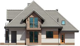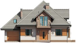 Graficzne opracowanie rzutów poglądowych widocznych na karcie projektu zostało wykonane przez Extradom.pl. Prezentowane przez Extradom.pl wizualizacje wykonane zostały przez autora projektu i należy poczytywać je jedynie za przykład i propozycję wykończenia, wizję architektoniczną autora projektu. Ostateczne wykończenie budynku może nastąpić na wiele sposobów. Szczegółowe rozwiązania zastosowane w oferowanej dokumentacji - w tym również ilość, lokalizacje i wygląd okien, drzwi, kominów - mogą w niewielkim stopniu różnić się od prezentowanej wizualizacji budynku.