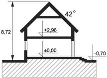 Ściany: 2-warstwowe - pustak ceramiczny + styropian. Stropy: żelbetowe, wylewane. Dach: dachówka, kąt nachylenia 42°. Ogrzewanie: gazowe.