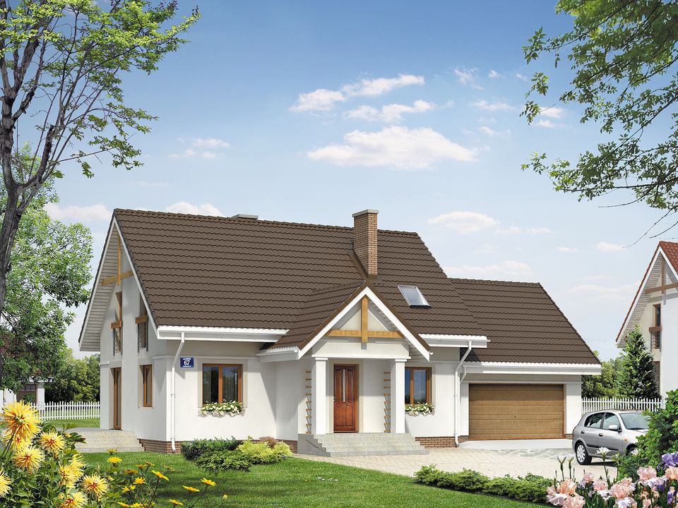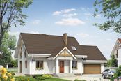 Graficzne opracowanie rzutów poglądowych widocznych na karcie projektu zostało wykonane przez Extradom.pl. Prezentowane przez Extradom.pl wizualizacje wykonane zostały przez autora projektu i należy poczytywać je jedynie za przykład i propozycję wykończenia, wizję architektoniczną autora projektu. Ostateczne wykończenie budynku może nastąpić na wiele sposobów. Szczegółowe rozwiązania zastosowane w oferowanej dokumentacji - w tym również ilość, lokalizacje i wygląd okien, drzwi, kominów - mogą w niewielkim stopniu różnić się od prezentowanej wizualizacji budynku.