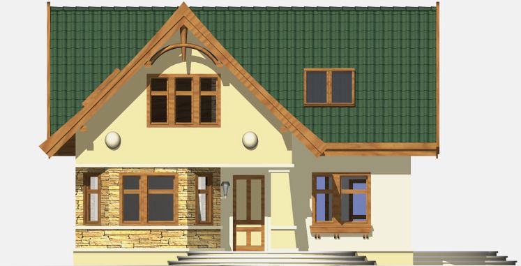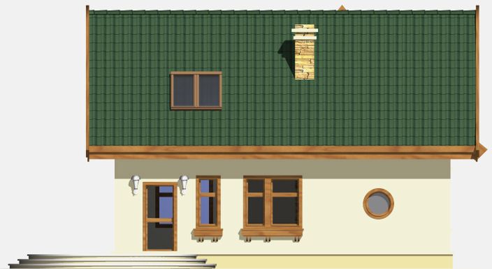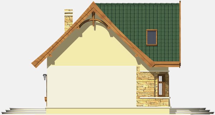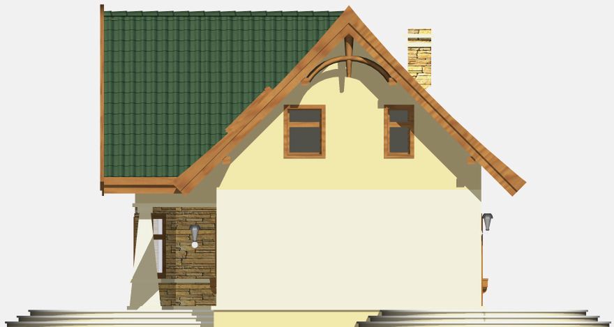 Graficzne opracowanie rzutów poglądowych widocznych na karcie projektu zostało wykonane przez Extradom.pl. Prezentowane przez Extradom.pl wizualizacje wykonane zostały przez autora projektu i należy poczytywać je jedynie za przykład i propozycję wykończenia, wizję architektoniczną autora projektu. Ostateczne wykończenie budynku może nastąpić na wiele sposobów. Szczegółowe rozwiązania zastosowane w oferowanej dokumentacji - w tym również ilość, lokalizacje i wygląd okien, drzwi, kominów - mogą w niewielkim stopniu różnić się od prezentowanej wizualizacji budynku.