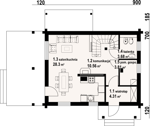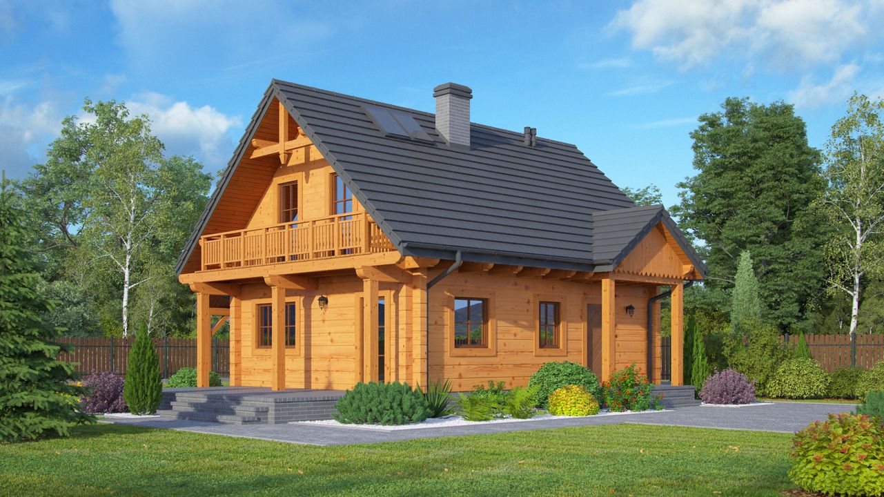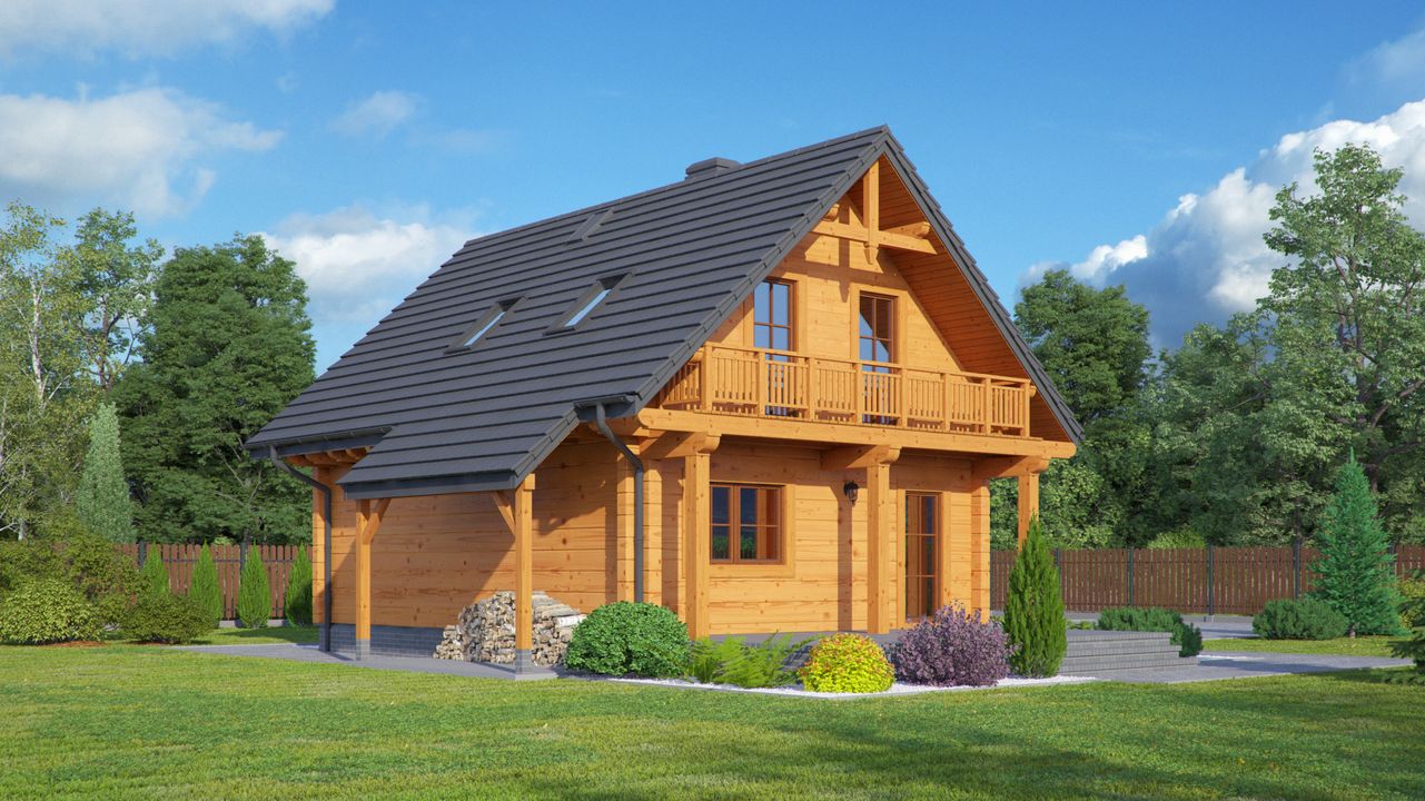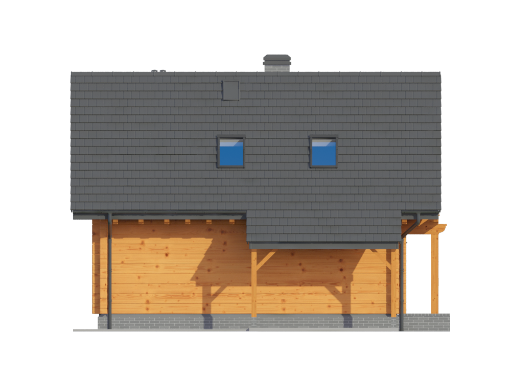 Graficzne opracowanie rzutów poglądowych widocznych na karcie projektu zostało wykonane przez Extradom.pl. Prezentowane przez Extradom.pl wizualizacje wykonane zostały przez autora projektu i należy poczytywać je jedynie za przykład i propozycję wykończenia, wizję architektoniczną autora projektu. Ostateczne wykończenie budynku może nastąpić na wiele sposobów. Szczegółowe rozwiązania zastosowane w oferowanej dokumentacji - w tym również ilość, lokalizacje i wygląd okien, drzwi, kominów - mogą w niewielkim stopniu różnić się od prezentowanej wizualizacji budynku.