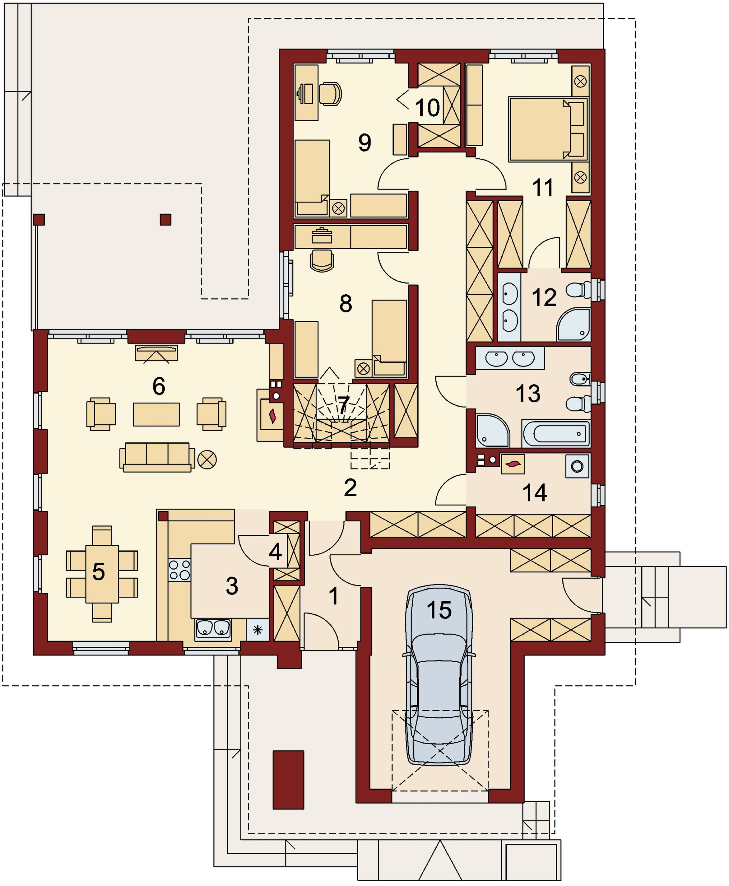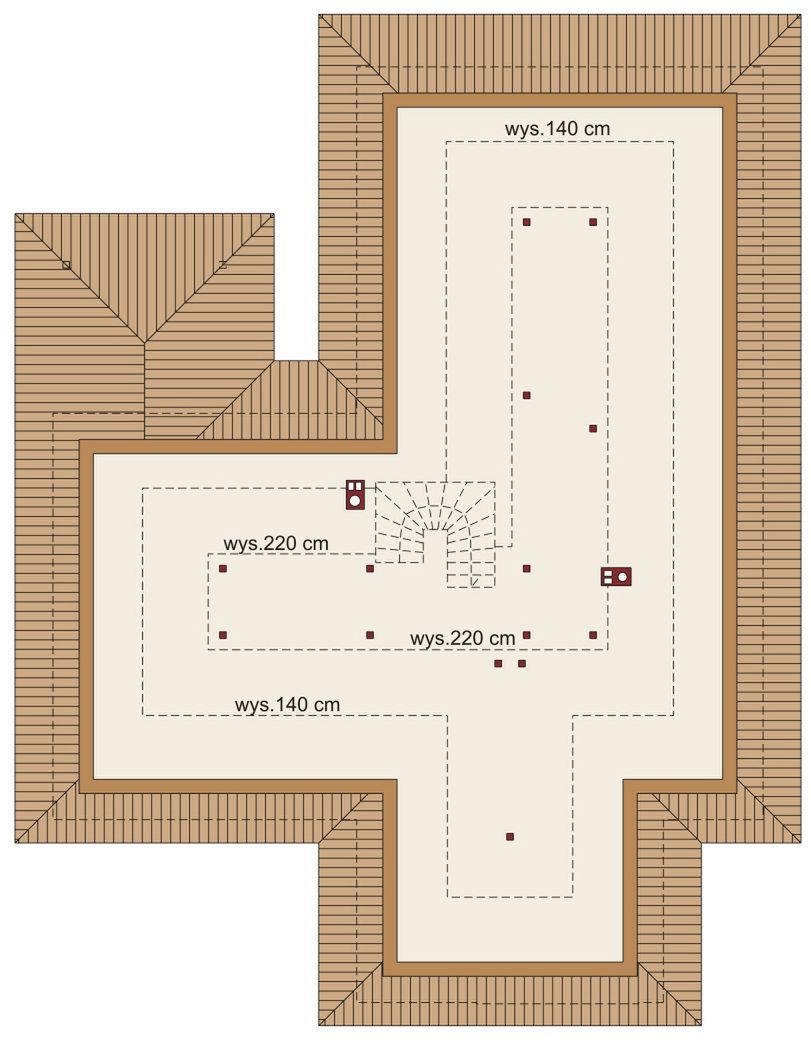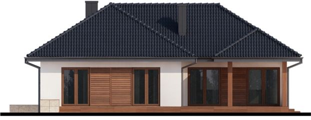 Graficzne opracowanie rzutów poglądowych widocznych na karcie projektu zostało wykonane przez Extradom.pl. Prezentowane przez Extradom.pl wizualizacje wykonane zostały przez autora projektu i należy poczytywać je jedynie za przykład i propozycję wykończenia, wizję architektoniczną autora projektu. Ostateczne wykończenie budynku może nastąpić na wiele sposobów. Szczegółowe rozwiązania zastosowane w oferowanej dokumentacji - w tym również ilość, lokalizacje i wygląd okien, drzwi, kominów - mogą w niewielkim stopniu różnić się od prezentowanej wizualizacji budynku.