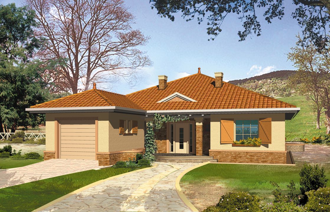 Ściany fundamentowe: bloczek betonowy. Ściany zewnętrzne: beton komórkowy + styropian. Ściany wewnętrzne: pustak ceramiczny. Strop: gęstożebrowy. Konstrukcja dachu: drewniana. Pokrycie dachowe: dachówka cementowa.