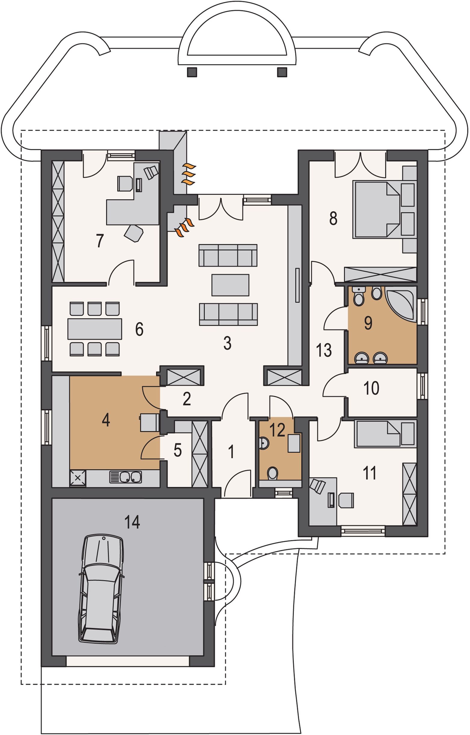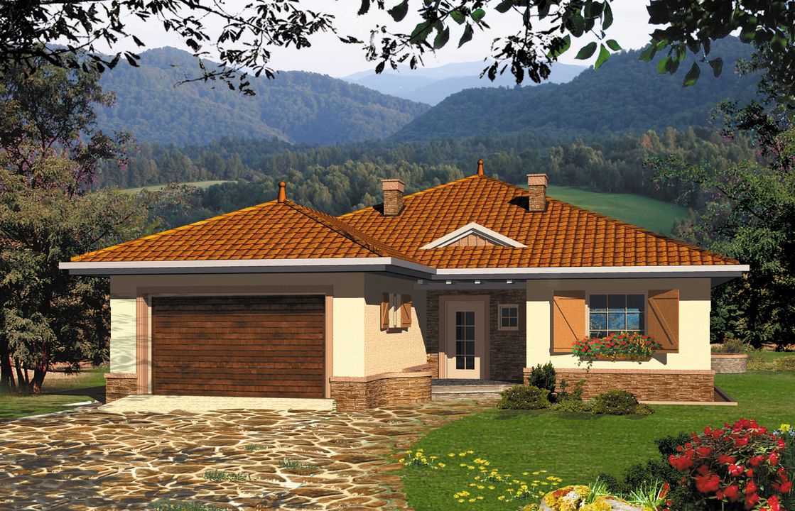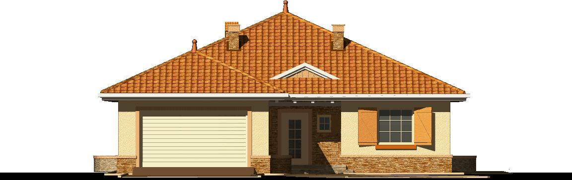 Graficzne opracowanie rzutów poglądowych widocznych na karcie projektu zostało wykonane przez Extradom.pl. Prezentowane przez Extradom.pl wizualizacje wykonane zostały przez autora projektu i należy poczytywać je jedynie za przykład i propozycję wykończenia, wizję architektoniczną autora projektu. Ostateczne wykończenie budynku może nastąpić na wiele sposobów. Szczegółowe rozwiązania zastosowane w oferowanej dokumentacji - w tym również ilość, lokalizacje i wygląd okien, drzwi, kominów - mogą w niewielkim stopniu różnić się od prezentowanej wizualizacji budynku.