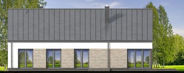 Graficzne opracowanie rzutów poglądowych widocznych na karcie projektu zostało wykonane przez Extradom.pl. Prezentowane przez Extradom.pl wizualizacje wykonane zostały przez autora projektu i należy poczytywać je jedynie za przykład i propozycję wykończenia, wizję architektoniczną autora projektu. Ostateczne wykończenie budynku może nastąpić na wiele sposobów. Szczegółowe rozwiązania zastosowane w oferowanej dokumentacji - w tym również ilość, lokalizacje i wygląd okien, drzwi, kominów - mogą w niewielkim stopniu różnić się od prezentowanej wizualizacji budynku.