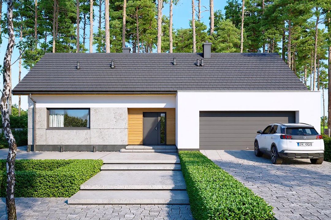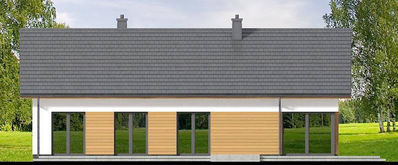 Graficzne opracowanie rzutów poglądowych widocznych na karcie projektu zostało wykonane przez Extradom.pl. Prezentowane przez Extradom.pl wizualizacje wykonane zostały przez autora projektu i należy poczytywać je jedynie za przykład i propozycję wykończenia, wizję architektoniczną autora projektu. Ostateczne wykończenie budynku może nastąpić na wiele sposobów. Szczegółowe rozwiązania zastosowane w oferowanej dokumentacji - w tym również ilość, lokalizacje i wygląd okien, drzwi, kominów - mogą w niewielkim stopniu różnić się od prezentowanej wizualizacji budynku.