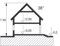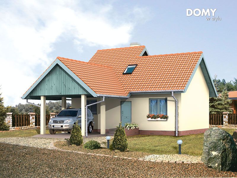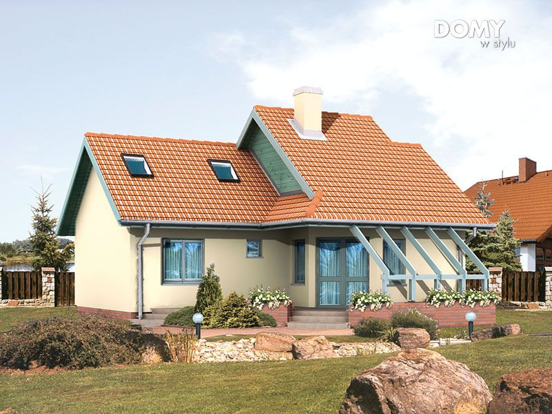 Graficzne opracowanie rzutów poglądowych widocznych na karcie projektu zostało wykonane przez Extradom.pl. Prezentowane przez Extradom.pl wizualizacje wykonane zostały przez autora projektu i należy poczytywać je jedynie za przykład i propozycję wykończenia, wizję architektoniczną autora projektu. Ostateczne wykończenie budynku może nastąpić na wiele sposobów. Szczegółowe rozwiązania zastosowane w oferowanej dokumentacji - w tym również ilość, lokalizacje i wygląd okien, drzwi, kominów - mogą w niewielkim stopniu różnić się od prezentowanej wizualizacji budynku.