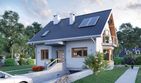 Graficzne opracowanie rzutów poglądowych widocznych na karcie projektu zostało wykonane przez Extradom.pl. Prezentowane przez Extradom.pl wizualizacje wykonane zostały przez autora projektu i należy poczytywać je jedynie za przykład i propozycję wykończenia, wizję architektoniczną autora projektu. Ostateczne wykończenie budynku może nastąpić na wiele sposobów. Szczegółowe rozwiązania zastosowane w oferowanej dokumentacji - w tym również ilość, lokalizacje i wygląd okien, drzwi, kominów - mogą w niewielkim stopniu różnić się od prezentowanej wizualizacji budynku.