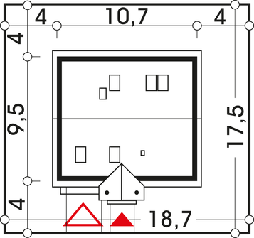 Strop: gęstożebrowy Teriva I. Ściany zewnętrzne: silikat 24 + styropian Termonium Fasada 14cm. Pokrycie dachowe: dachówka ceramiczna. Okna połaciowe: Velux.