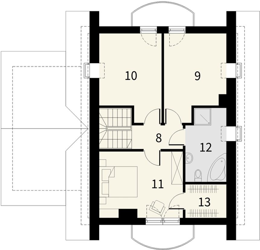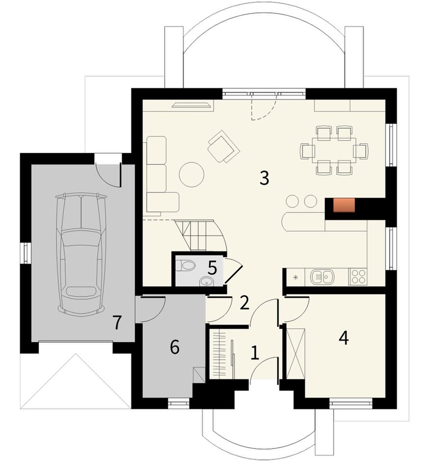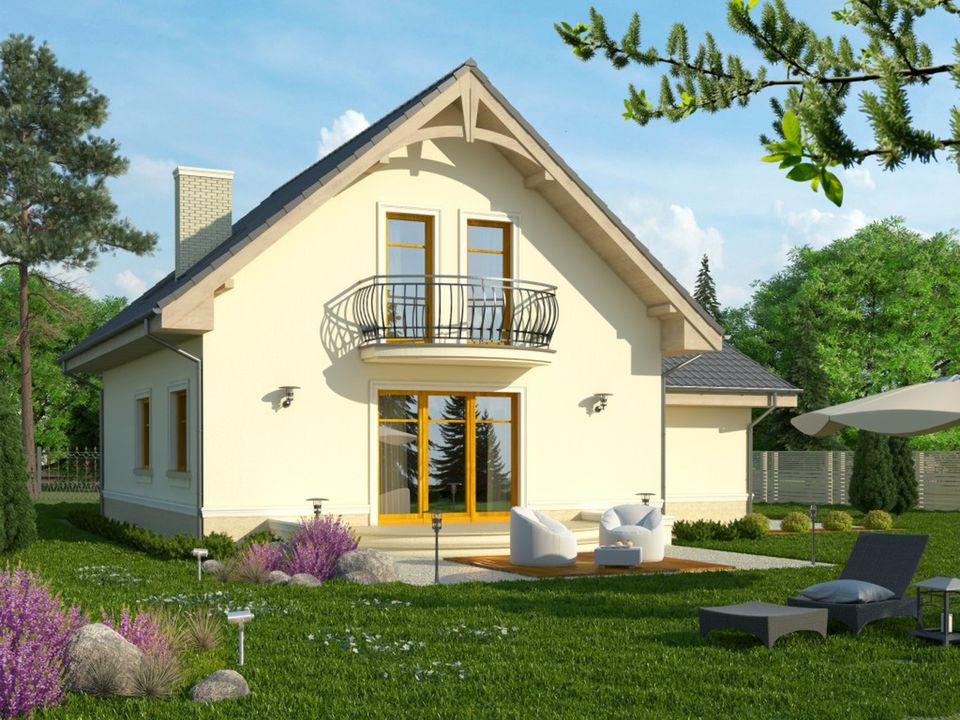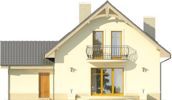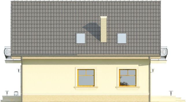 Graficzne opracowanie rzutów poglądowych widocznych na karcie projektu zostało wykonane przez Extradom.pl. Prezentowane przez Extradom.pl wizualizacje wykonane zostały przez autora projektu i należy poczytywać je jedynie za przykład i propozycję wykończenia, wizję architektoniczną autora projektu. Ostateczne wykończenie budynku może nastąpić na wiele sposobów. Szczegółowe rozwiązania zastosowane w oferowanej dokumentacji - w tym również ilość, lokalizacje i wygląd okien, drzwi, kominów - mogą w niewielkim stopniu różnić się od prezentowanej wizualizacji budynku.