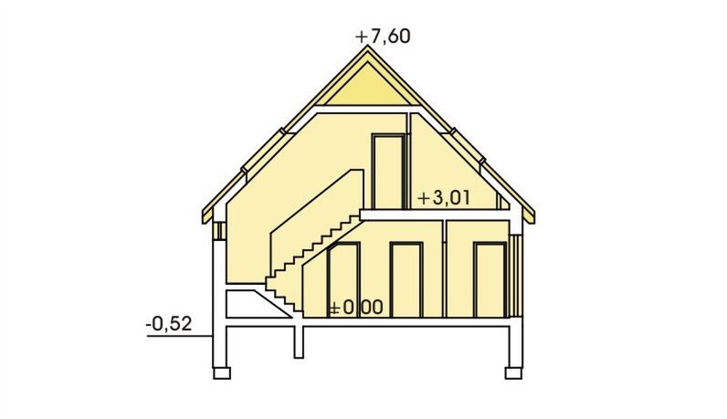 Strop: gęstożebrowy Teriva I. Ściany zewnętrzne: gazobeton 24cm + styropian 14cm. Pokrycie dachowe: dachówka ceramiczna. Okna połaciowe: Velux.