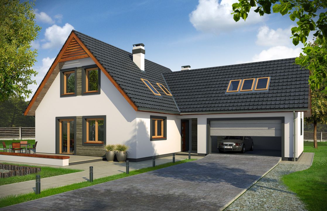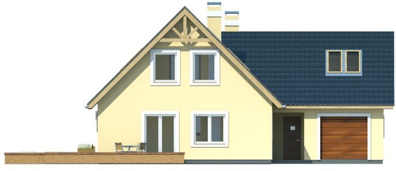 Graficzne opracowanie rzutów poglądowych widocznych na karcie projektu zostało wykonane przez Extradom.pl. Prezentowane przez Extradom.pl wizualizacje wykonane zostały przez autora projektu i należy poczytywać je jedynie za przykład i propozycję wykończenia, wizję architektoniczną autora projektu. Ostateczne wykończenie budynku może nastąpić na wiele sposobów. Szczegółowe rozwiązania zastosowane w oferowanej dokumentacji - w tym również ilość, lokalizacje i wygląd okien, drzwi, kominów - mogą w niewielkim stopniu różnić się od prezentowanej wizualizacji budynku.