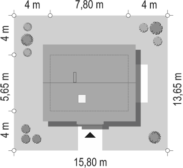 Fundamenty: monolityczne betonowe. Ściany zewnętrzne: beton komórkowy + styropian lub szkielet drewniany. Ściany wewnętrzne: beton komórkowy lub drewniane. Strop: drewniany. Elewacje: tynk cienkopowłokowy lub szalówka. Pokrycie dachu: dachówka lub blacha dachówkowa. Nachylenie dachu: 45 stopni.