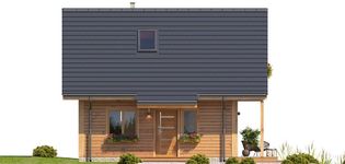 Graficzne opracowanie rzutów poglądowych widocznych na karcie projektu zostało wykonane przez Extradom.pl. Prezentowane przez Extradom.pl wizualizacje wykonane zostały przez autora projektu i należy poczytywać je jedynie za przykład i propozycję wykończenia, wizję architektoniczną autora projektu. Ostateczne wykończenie budynku może nastąpić na wiele sposobów. Szczegółowe rozwiązania zastosowane w oferowanej dokumentacji - w tym również ilość, lokalizacje i wygląd okien, drzwi, kominów - mogą w niewielkim stopniu różnić się od prezentowanej wizualizacji budynku.