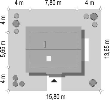 Fundamenty: betonowe ławy i ściany fundamentowe z bloczków betonowych. Ściany zewnętrzne: beton komórkowy + styropian. Strop: drewniany. Elewacje: tynk cienkowarstwowy. Pokrycie dachu: dachówka ceramiczna lub blachodachówka. Nachylenie dachu: 45 stopni.