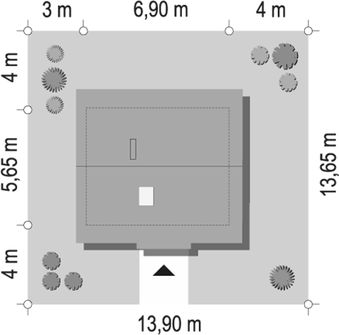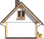 Fundamenty: betonowe ławy i ściany fundamentowe z bloczków betonowych. Ściany zewnętrzne: beton komórkowy + styropian. Strop: drewniany. Elewacje: tynk cienkowarstwowy. Pokrycie dachu: dachówka ceramiczna lub blachodachówka. Nachylenie dachu: 45 stopni.