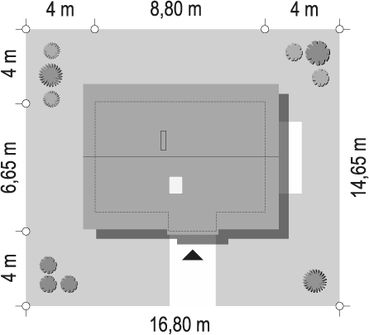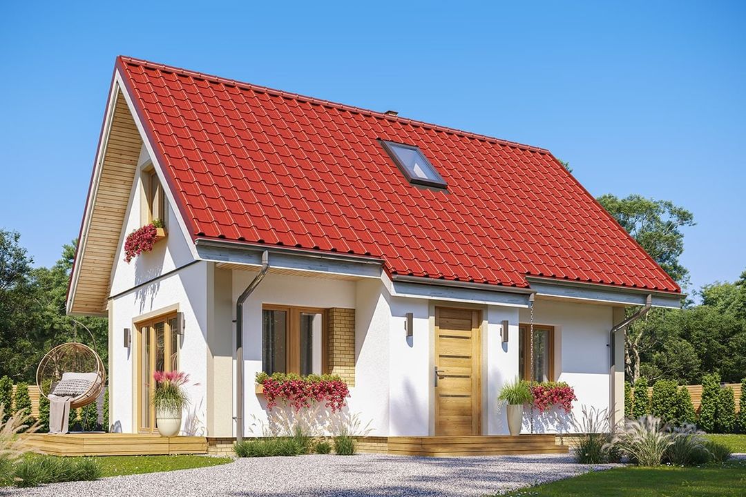 Fundamenty: betonowe ławy i ściany fundamentowe z bloczków betonowych. Ściany zewnętrzne: beton komórkowy + styropian. Strop: drewniany. Elewacje: tynk cienkowarstwowy. Pokrycie dachu: dachówka ceramiczna lub blachodachówka. Nachylenie dachu: 45 stopni.