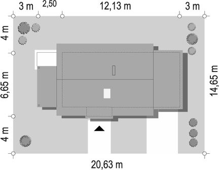 Fundamenty: betonowe ławy i ściany fundamentowe z bloczków betonowych. Ściany zewnętrzne: beton komórkowy + styropian. Strop: drewniany. Elewacje: tynk cienkowarstwowy. Pokrycie dachu: dachówka ceramiczna lub blachodachówka. Nachylenie dachu: 45. 12, 5, 19,8.