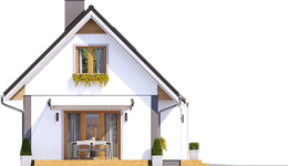 Graficzne opracowanie rzutów poglądowych widocznych na karcie projektu zostało wykonane przez Extradom.pl. Prezentowane przez Extradom.pl wizualizacje wykonane zostały przez autora projektu i należy poczytywać je jedynie za przykład i propozycję wykończenia, wizję architektoniczną autora projektu. Ostateczne wykończenie budynku może nastąpić na wiele sposobów. Szczegółowe rozwiązania zastosowane w oferowanej dokumentacji - w tym również ilość, lokalizacje i wygląd okien, drzwi, kominów - mogą w niewielkim stopniu różnić się od prezentowanej wizualizacji budynku.