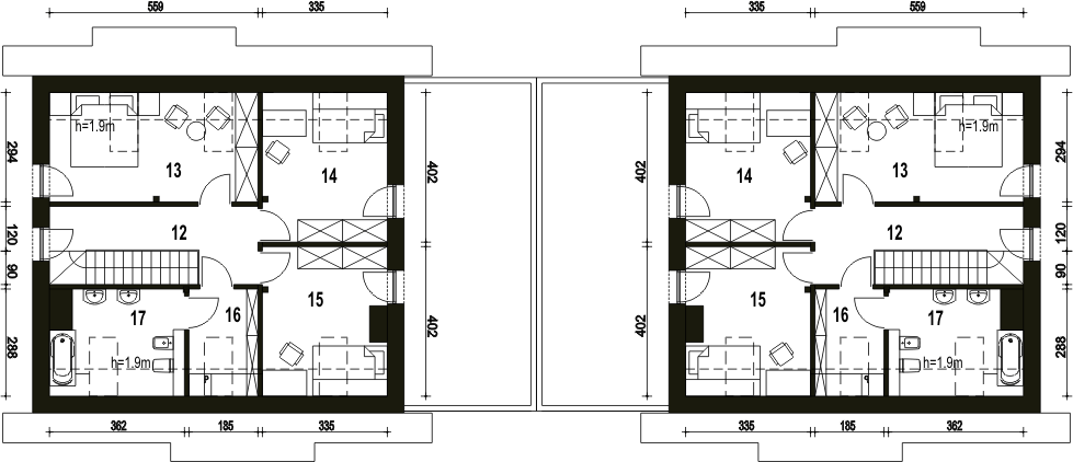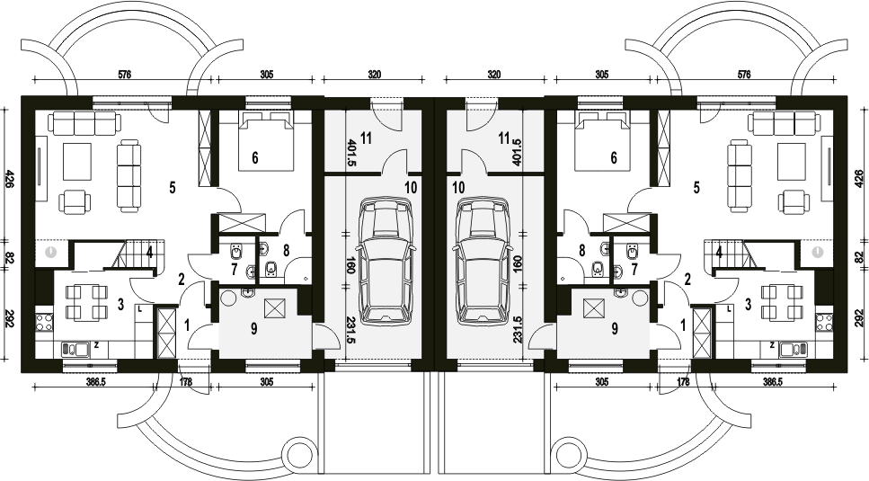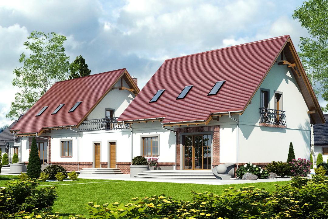 Projekt jest w fazie koncepcji. Przy zakupie projektu należy zapłacić 50% zaliczki. Zaliczka jest bezzwrotna w przypadku zwrotu lub rezygnacji z zamówienia. Budynek dwulokalowy posadowiony na wspólnym fundamencie. Jeśli planujesz budowę na osobnych działkach zamów pojedyncze segmenty: podstawa + lustro.
