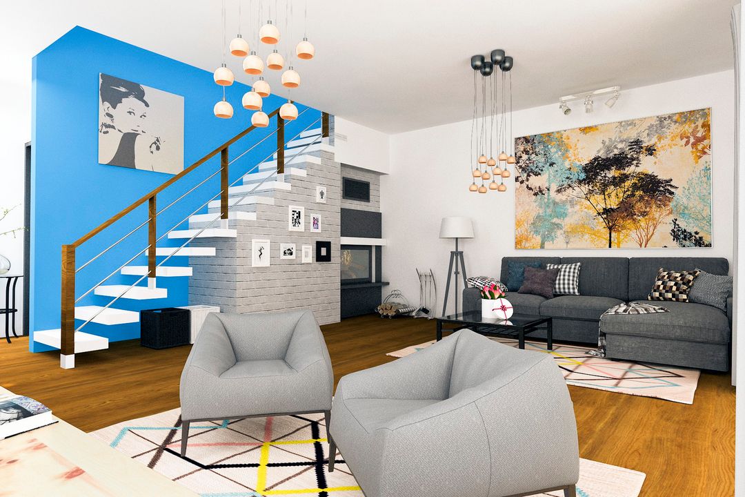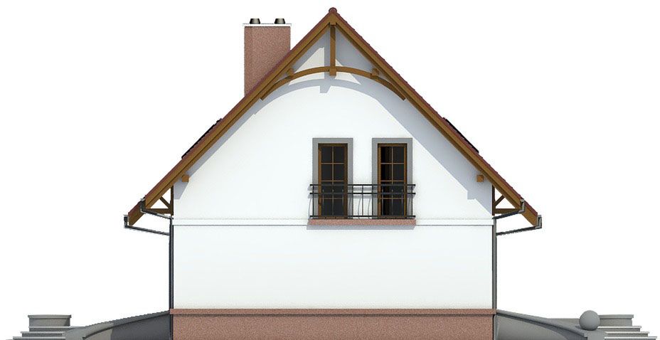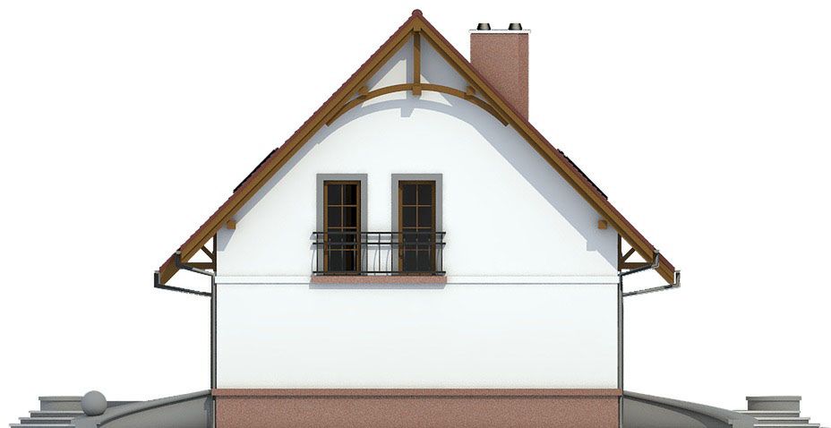 Graficzne opracowanie rzutów poglądowych widocznych na karcie projektu zostało wykonane przez Extradom.pl. Prezentowane przez Extradom.pl wizualizacje wykonane zostały przez autora projektu i należy poczytywać je jedynie za przykład i propozycję wykończenia, wizję architektoniczną autora projektu. Ostateczne wykończenie budynku może nastąpić na wiele sposobów. Szczegółowe rozwiązania zastosowane w oferowanej dokumentacji - w tym również ilość, lokalizacje i wygląd okien, drzwi, kominów - mogą w niewielkim stopniu różnić się od prezentowanej wizualizacji budynku.