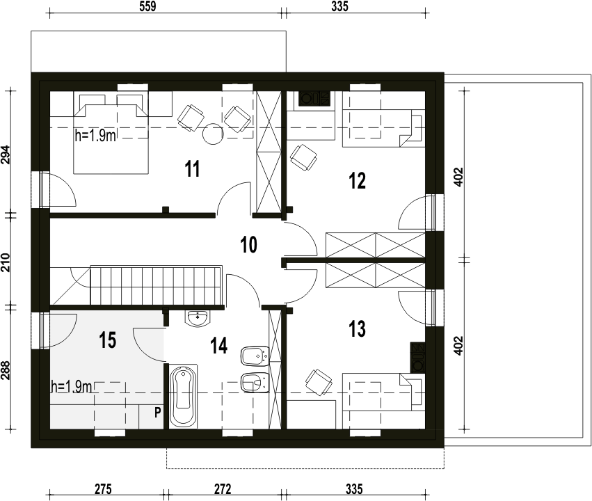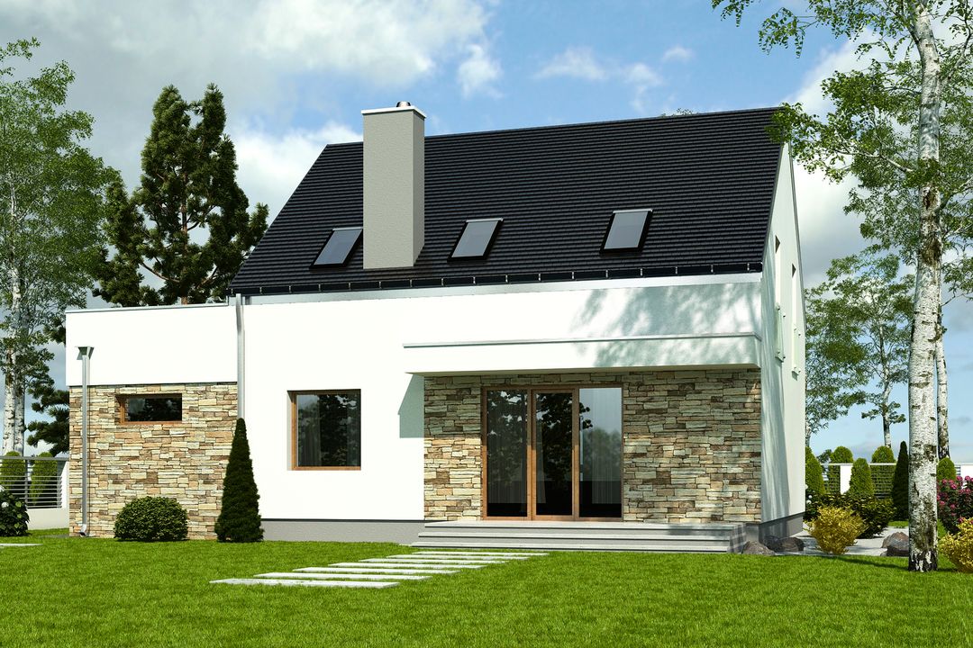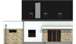 Graficzne opracowanie rzutów poglądowych widocznych na karcie projektu zostało wykonane przez Extradom.pl. Prezentowane przez Extradom.pl wizualizacje wykonane zostały przez autora projektu i należy poczytywać je jedynie za przykład i propozycję wykończenia, wizję architektoniczną autora projektu. Ostateczne wykończenie budynku może nastąpić na wiele sposobów. Szczegółowe rozwiązania zastosowane w oferowanej dokumentacji - w tym również ilość, lokalizacje i wygląd okien, drzwi, kominów - mogą w niewielkim stopniu różnić się od prezentowanej wizualizacji budynku.